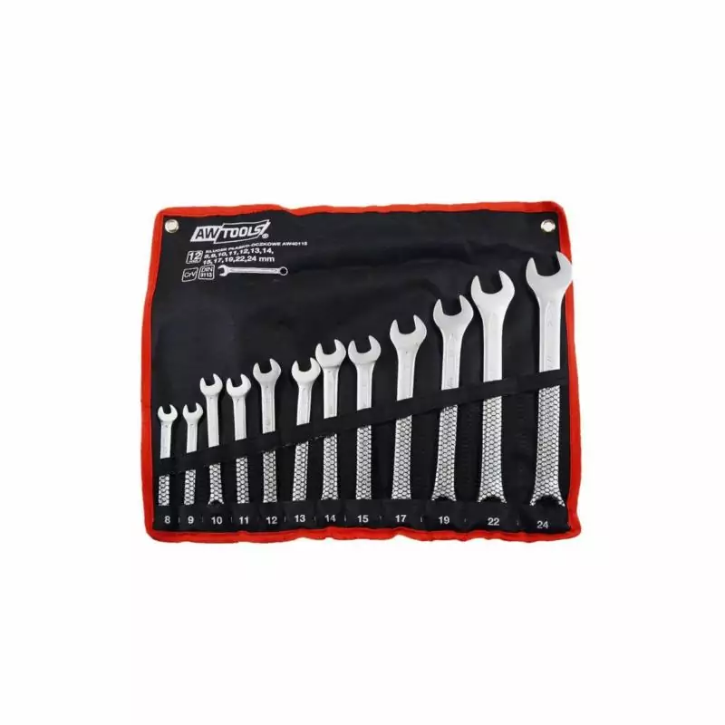 Zestaw kluczy płasko-oczkowych 8-24mm 12szt. Awtools AW30512 to profesjonalny komplet narzędzi ręcznych, przeznaczony do intensywnych prac w warsztacie samochodowym i dla majsterkowiczów. Wykonane z kutej matrycowo stali chromowo-wanadowej (CrV) i wyposażone w główkę odchyloną o 15 stopni, zapewniają wyjątkową trwałość oraz komfort pracy w trudno dostępnych miejscach.