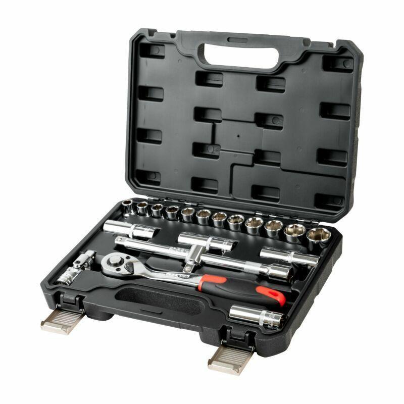 Zestaw kluczy nasadowych z grzechotką 1/2" 20szt. Pro WK402 to profesjonalny komplet narzędzi ręcznych, przeznaczony do intensywnych prac warsztatowych i serwisowych. Dzięki wykonaniu z wysokogatunkowej stali chromowo-wanadowej CrV 50BV30 oraz zastosowaniu precyzyjnej grzechotki z 72-zębowym mechanizmem zapadkowym, zestaw zapewnia niezawodność i długą żywotność.