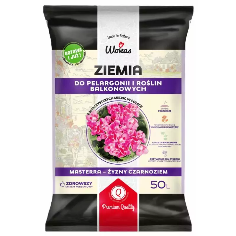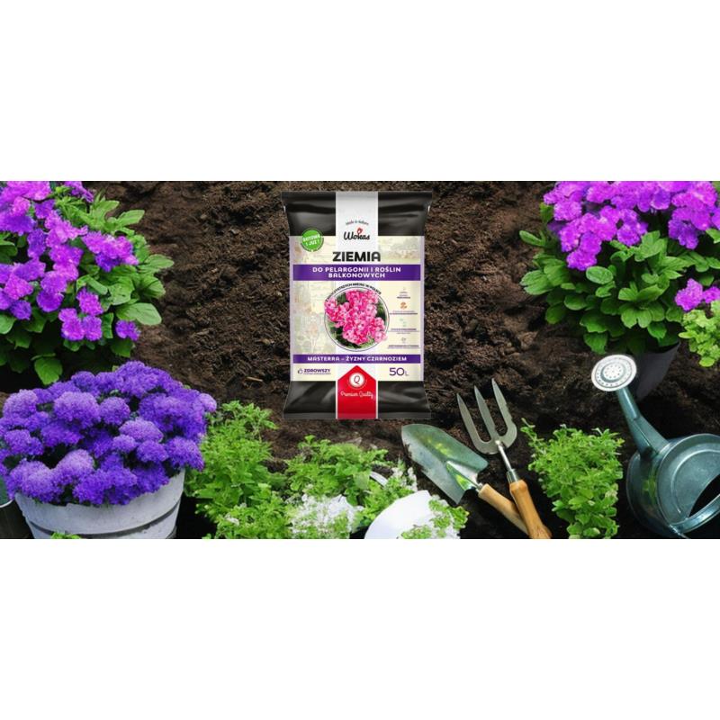 Ziemia do pelargonii i kwiatów balkonowych Wokas Masterra 50L to idealne podłoże do uprawy roślin ozdobnych, szczególnie pelargonii. Dzięki przemyślanej mieszance torfu oraz ziemi kompostowej, zapewnia doskonałą przepuszczalność i zdolność do zatrzymywania wody. Wzbogacona nawozami, wspiera intensywne kwitnienie oraz piękną kolorystykę kwiatów. Zastosowanie pH 6,0-7,0 oraz niskie zasolenie gwarantują zdrowy rozwój roślin balkonowych, takich jak surfinie czy lobelie.