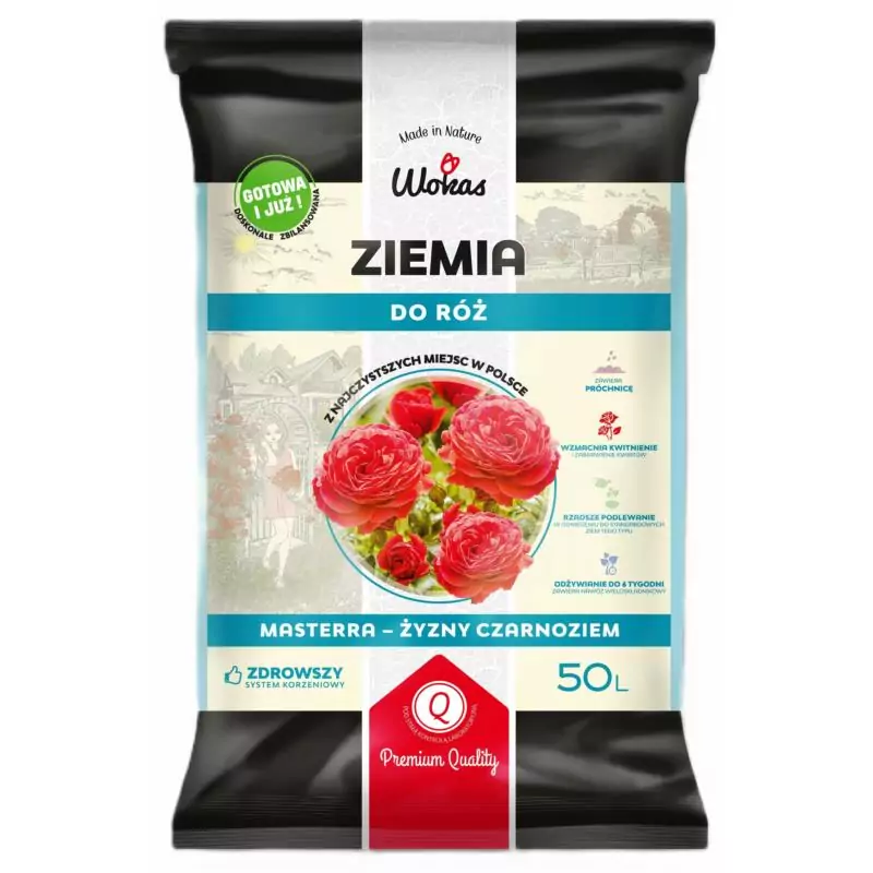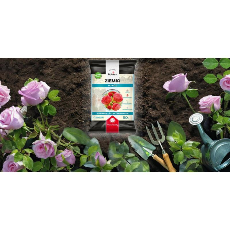 Ziemia do róż Wokas Masterra 50L to specjalistyczna mieszanka, idealna do amatorskiej uprawy róż w gruncie, pojemnikach i donicach. Oparta na torfie wysokim, ziemi kompostowej oraz mielonej korze sosnowej, gwarantuje doskonałe utrzymanie wilgoci. Wzbogacona nawóz wieloskładnikowym, wspiera intensywne kwitnienie i wybarwienie kwiatów. Optymalne pH 5,5 – 6,5 zapewnia korzystne warunki dla rozwoju roślin.