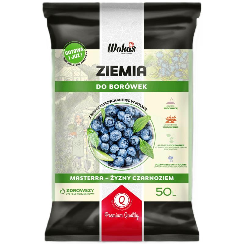 Wokas 50l BIO Ziemia do borówek Masterra Czarnoziem łączy w sobie torf wysokiej jakości oraz kompostowaną korę sosnową, co gwarantuje doskonałe napowietrzenie i odpowiedni drenaż, chroniąc korzenie roślin przed gniciem. Dzięki dostępnym składnikom odżywczym, ta ziemia wspiera wzrost roślin i zapewnia wysokie plony. Dodatkowo, gwarantuje optymalną wilgotność gleby, co positively wpływa na rozwój roślin.
