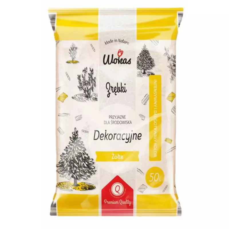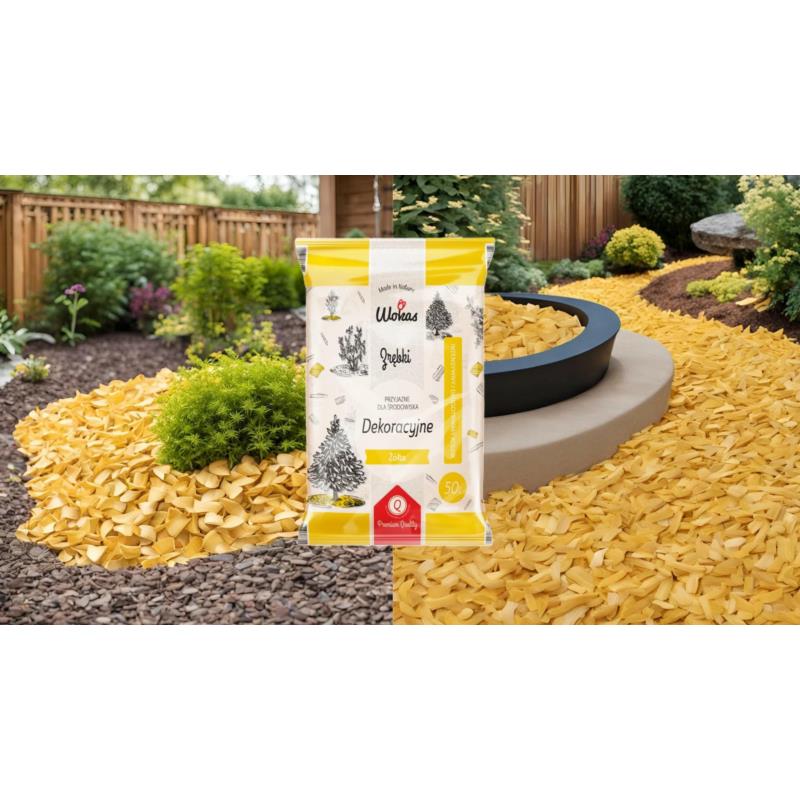 Zrębki drzewne dekoracyjne żółte Wokas Premium 50L 51szt/pal